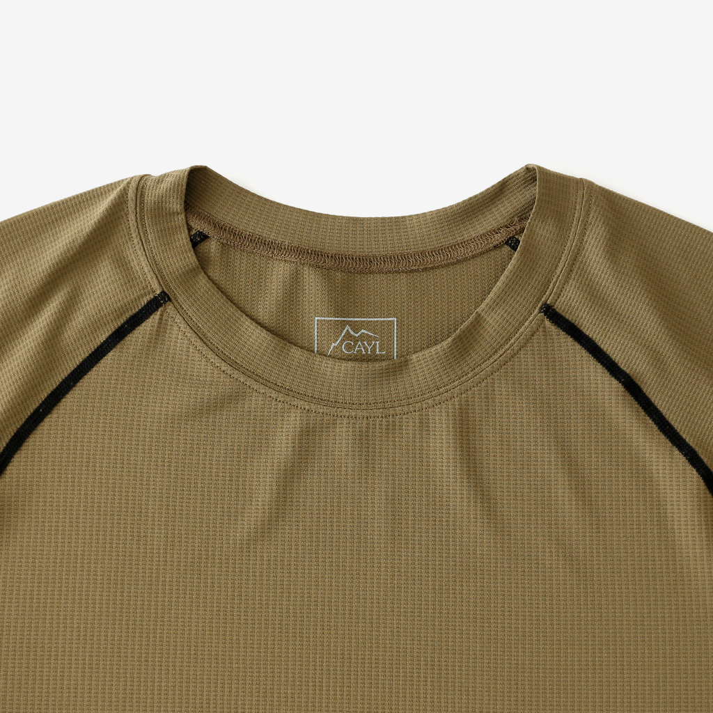 CAYL『Air Short Sleeve』は、CAYLオリジナル生地で作られた速乾ラグランスリーブTシャツ。 軽量で通気性が高く、吸汗速乾機能があり、さらにHeiq社の抗菌加工が施され、防臭効果もあります。 多くの汗をかく夏山やランニングのベースレイヤーとしても最適です。 モデル:184cm / Lサイズ
