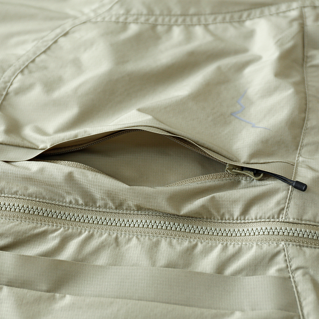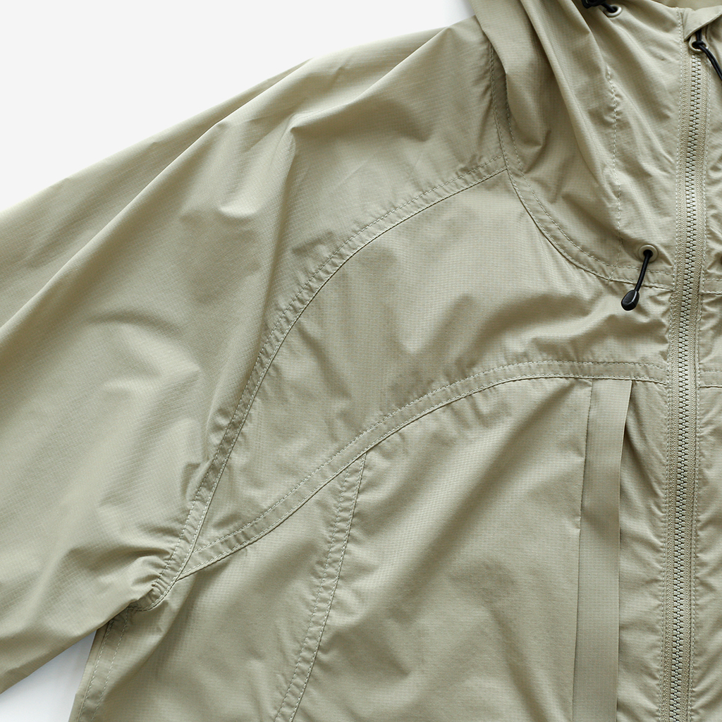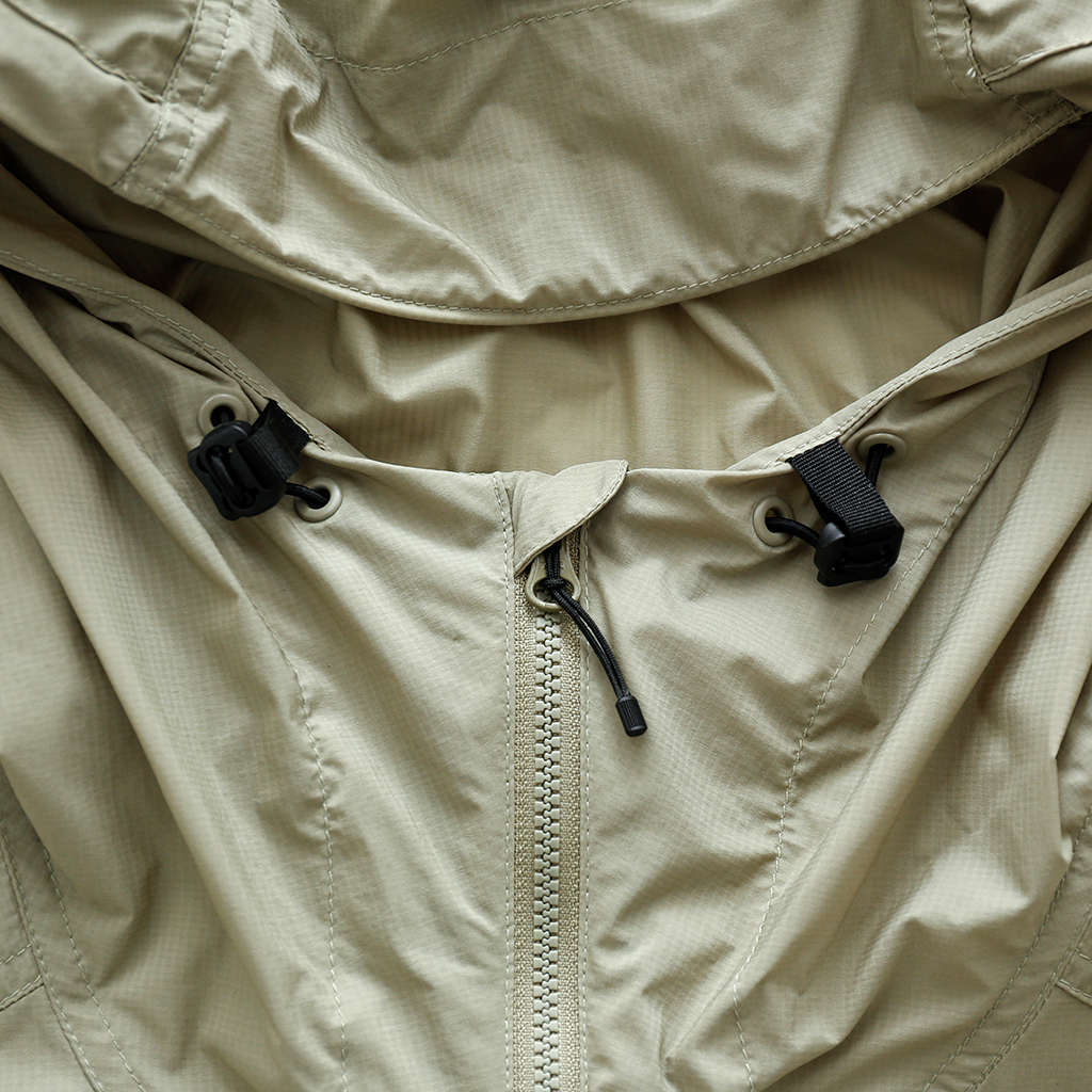 CAYL『Wind Jacket』は、軽量ながら適度な通気性、防風性、撥水性に優れた高機能素材「Pertex Quauntum Air」を使った万能ウインドジャケット。 撥水加工も施され、ちょっとした雨なら凌げて、収納もコンパクト。 フロントはダブルジッパー、4つのポケット、フードと裾はストリングコードで調整もできて、使うシーンを選ばないまさにCAYLらしいマルチな仕様。 軽量でコンパクトになるので荷物の負担にならず、アクティビティはもちろん、夏場の冷房対策や旅行、デイリーユースにも。 インナーやアウターとのレイヤリングで、1年を通して活躍してくれます。 モデル:184cm/Lサイズ