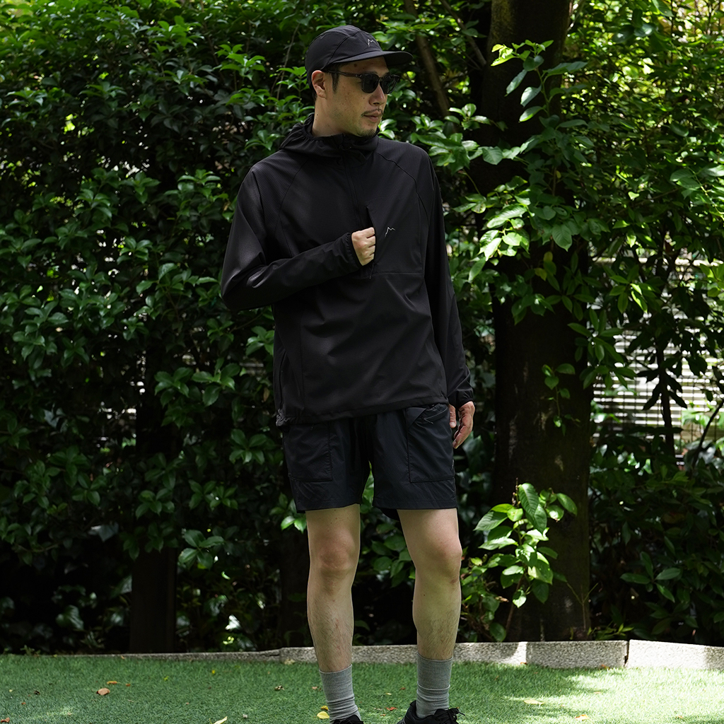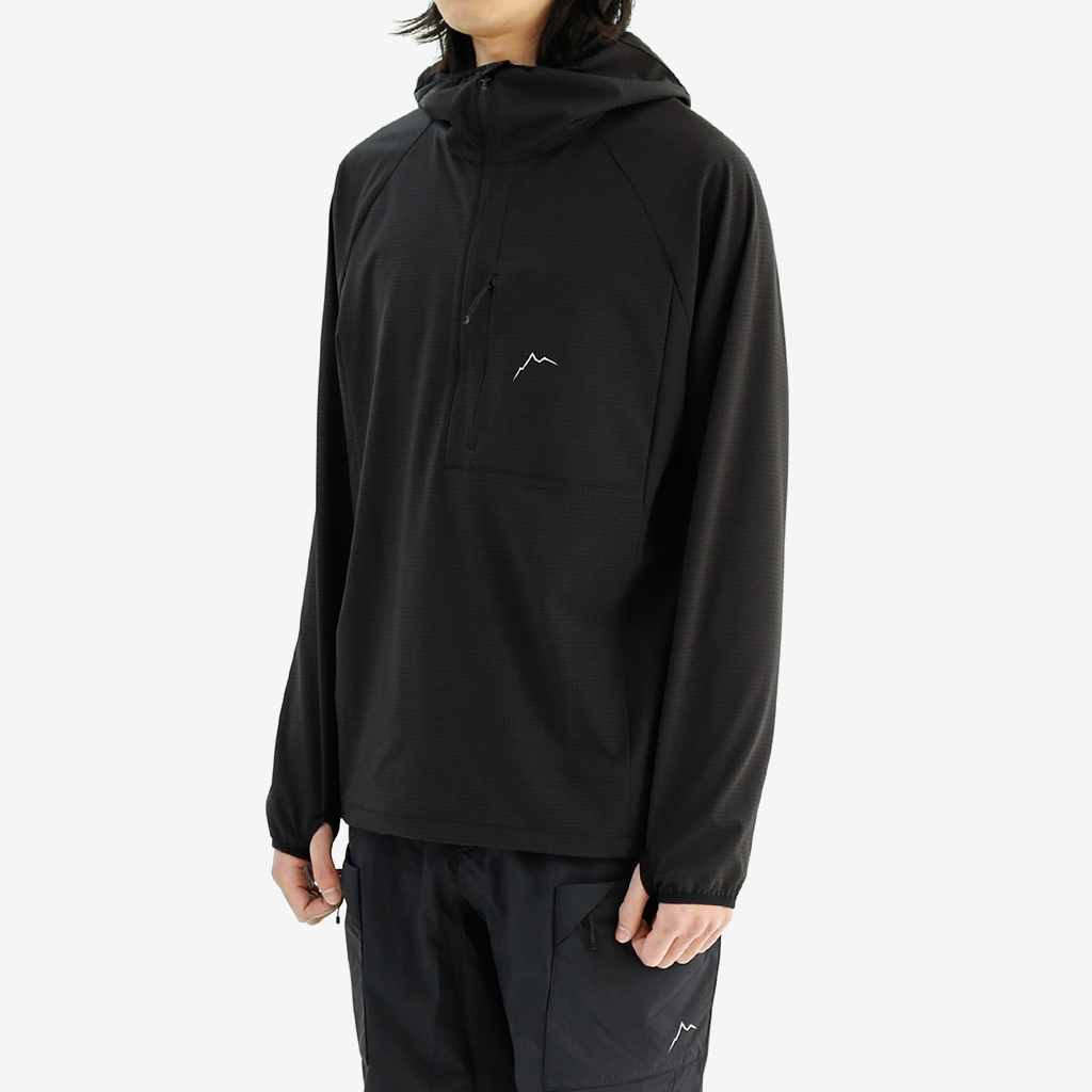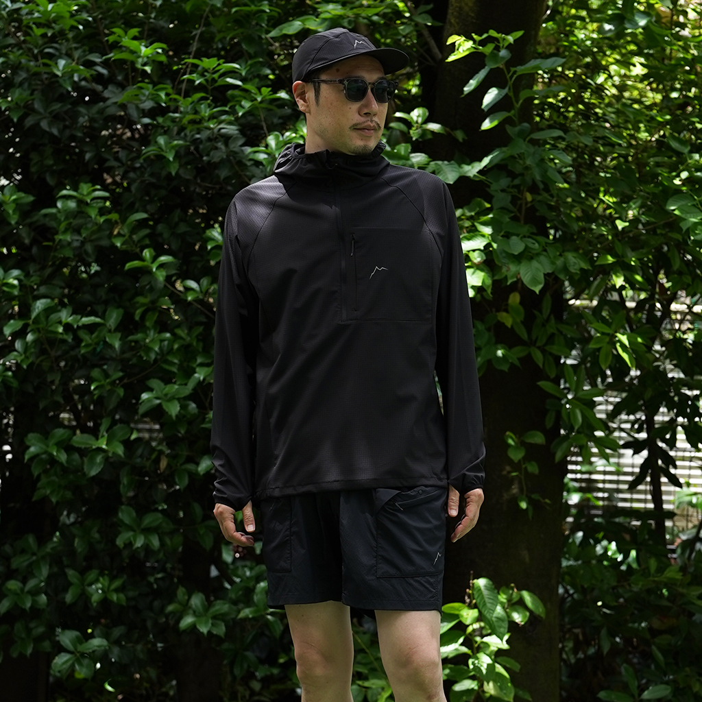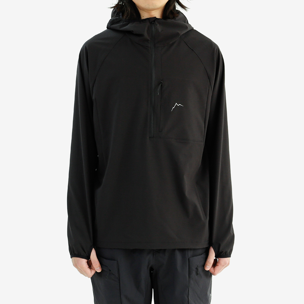 CAYL『Flow Half Zip 2』は、ベンチレーション効果の高いスパンメッシュ生地で作られたハーフジップフーディー。 通気性と速乾性に優れ、ベースレイヤーの上に着れば、汗を素早く乾かしてくれて、汗染みも目立ちません。 ストレッチ性もあるので動きに干渉せず、サイドファスナーのおかげで脱ぎ着もスムースにできます。 袖口はサムホール仕様、裾やフードもストリングコードで絞れるので、丈感やシルエットも変えられます。 ベースレイヤーだけでは肌寒い、ウインドシェルだと蒸れて暑い、そんなシチュエーションにオススメの1枚。 左脇はジップで広がるので、スムーズに脱ぎ着できます。 裾はコードで絞れます。 袖はサムホール仕様。 モデル:184cm / Lサイズ