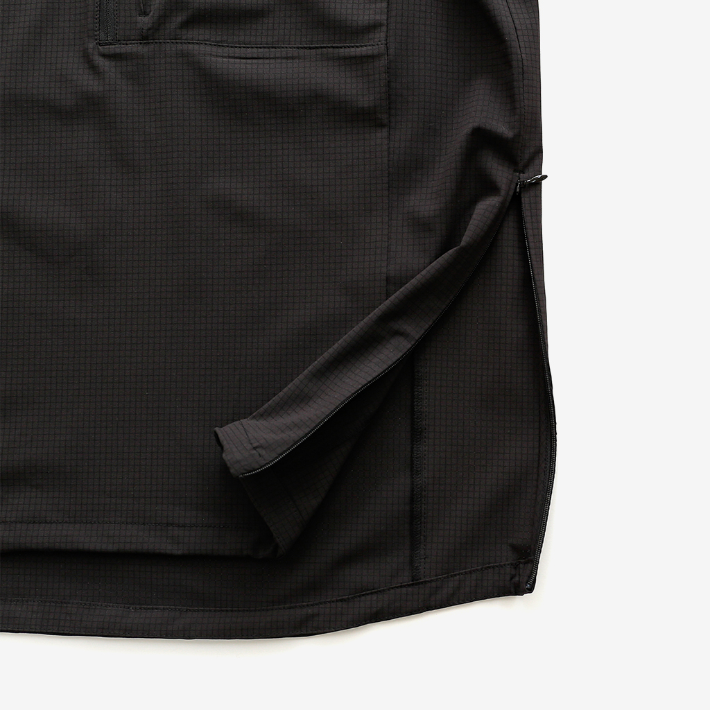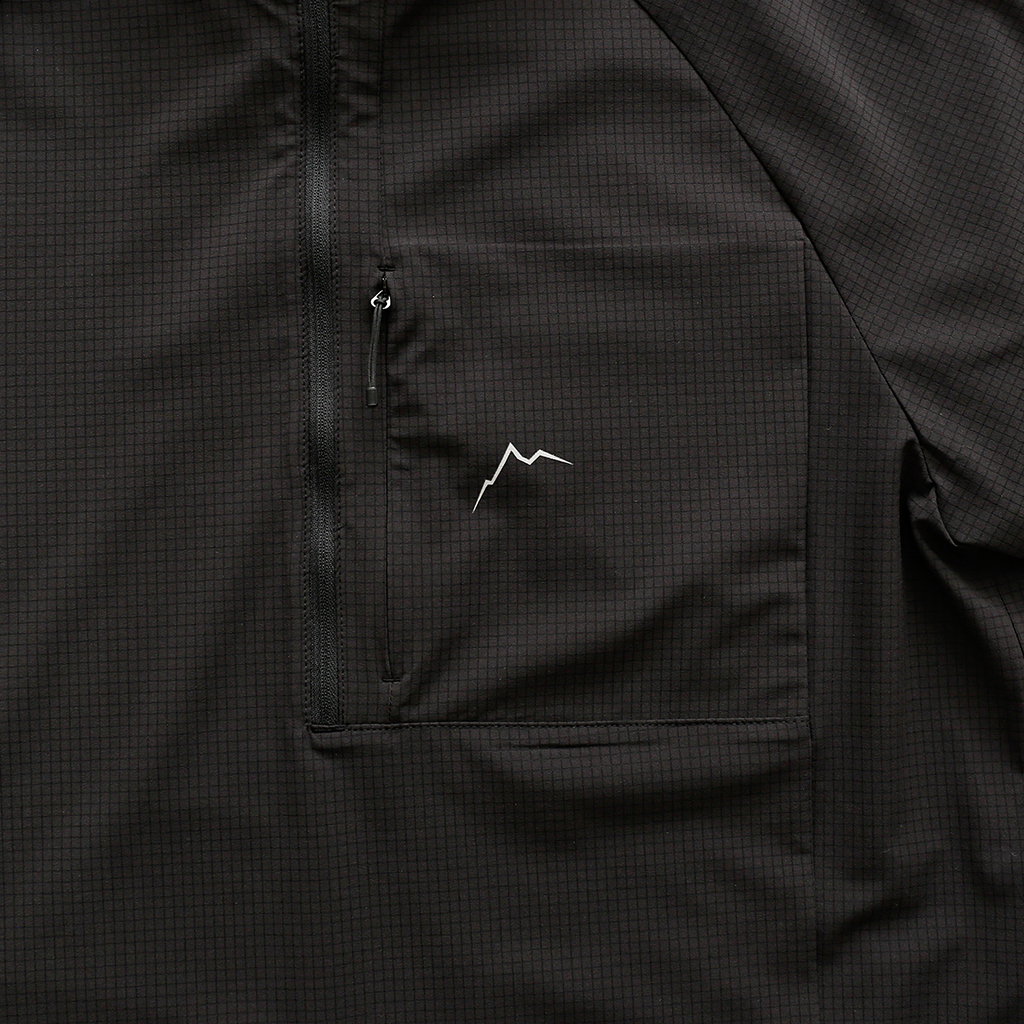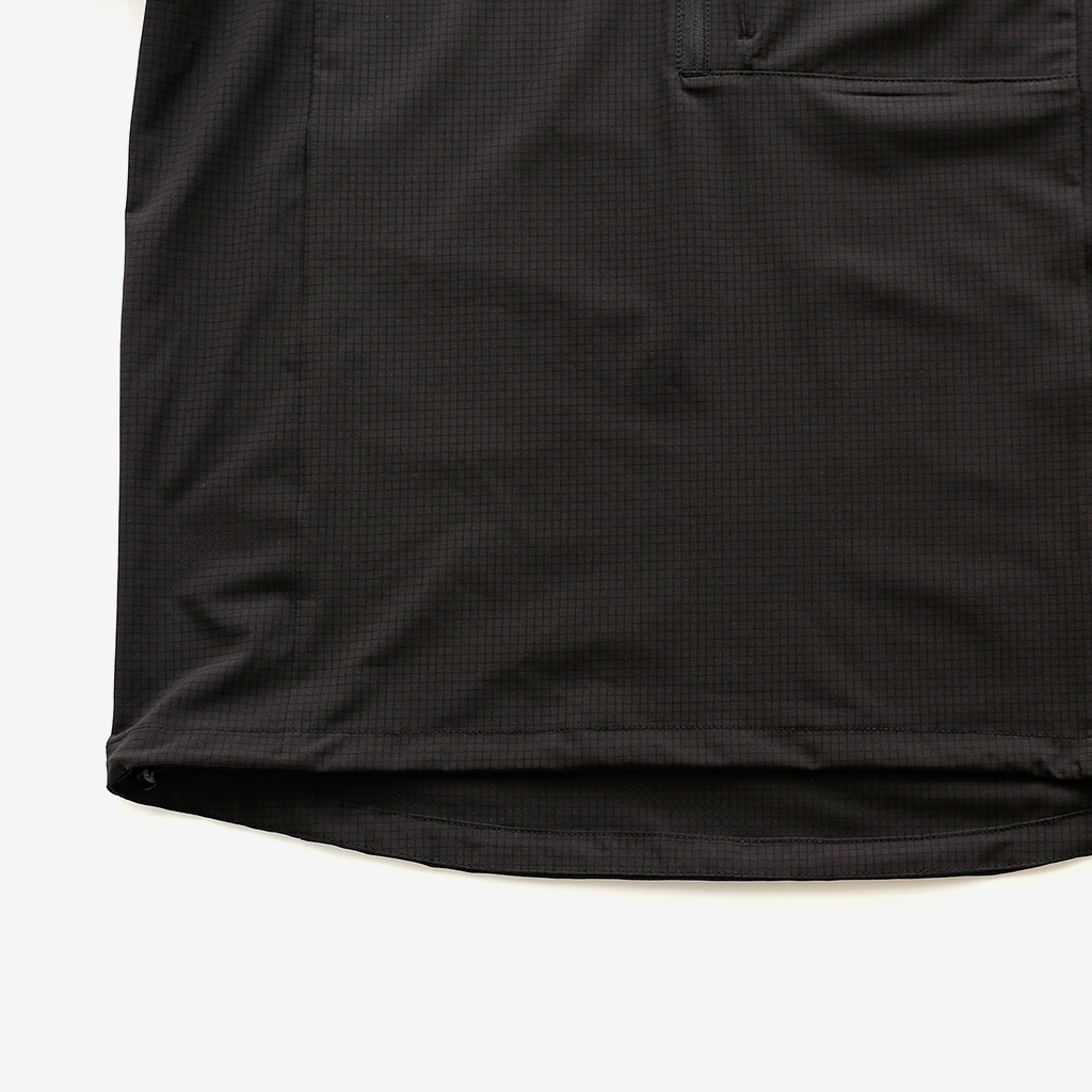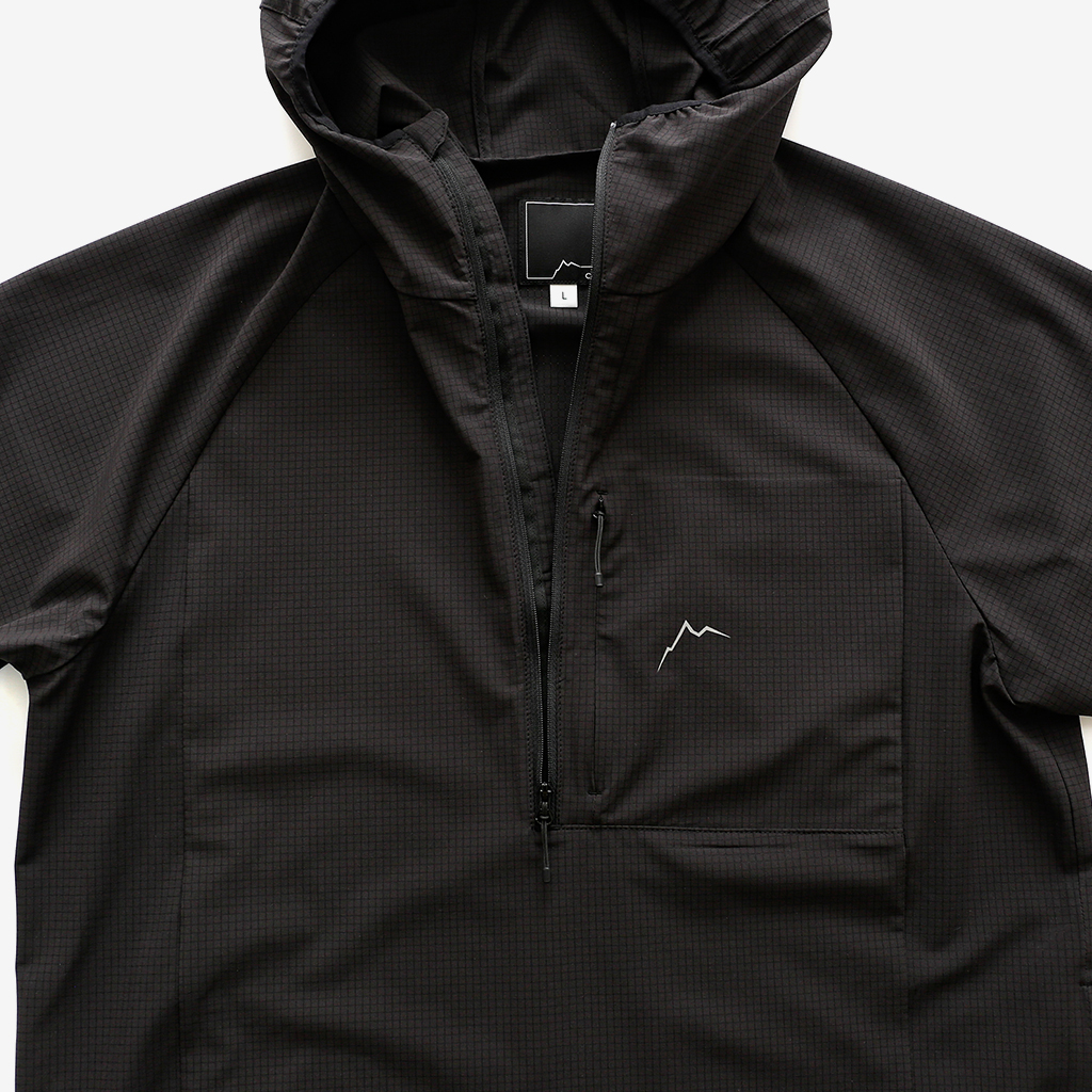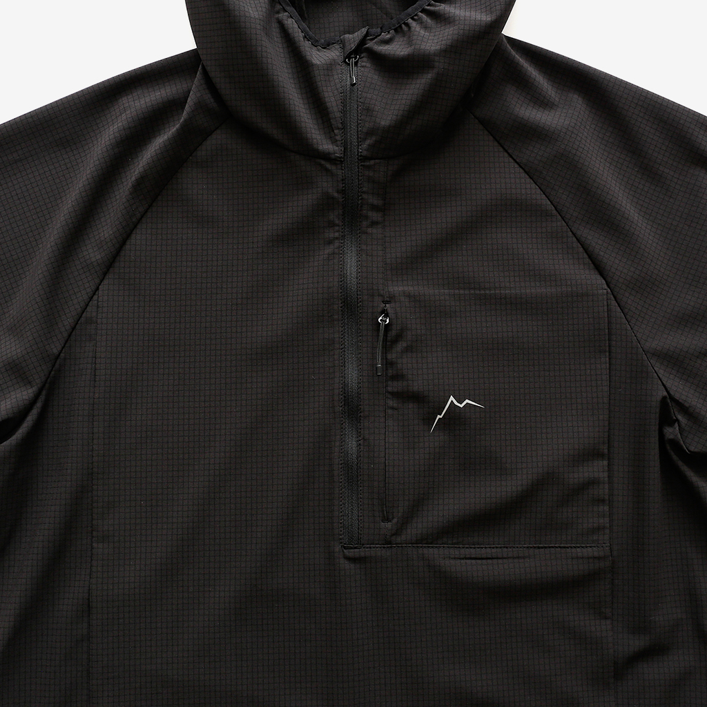 CAYL『Flow Half Zip 2』は、ベンチレーション効果の高いスパンメッシュ生地で作られたハーフジップフーディー。 通気性と速乾性に優れ、ベースレイヤーの上に着れば、汗を素早く乾かしてくれて、汗染みも目立ちません。 ストレッチ性もあるので動きに干渉せず、サイドファスナーのおかげで脱ぎ着もスムースにできます。 袖口はサムホール仕様、裾やフードもストリングコードで絞れるので、丈感やシルエットも変えられます。 ベースレイヤーだけでは肌寒い、ウインドシェルだと蒸れて暑い、そんなシチュエーションにオススメの1枚。 左脇はジップで広がるので、スムーズに脱ぎ着できます。 裾はコードで絞れます。 袖はサムホール仕様。 モデル:184cm / Lサイズ